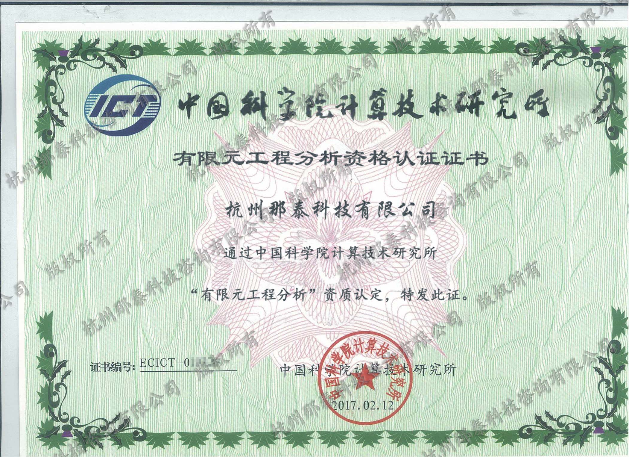 獲中國科學(xué)院計算技術(shù)研究所有限元分析資質(zhì)認(rèn)證 有限元分析工程師上崗資格證書 有限元分析工程師上崗資格證書 有限元分析工程師上崗資格證書 高級工程師證書 高級工程師證書